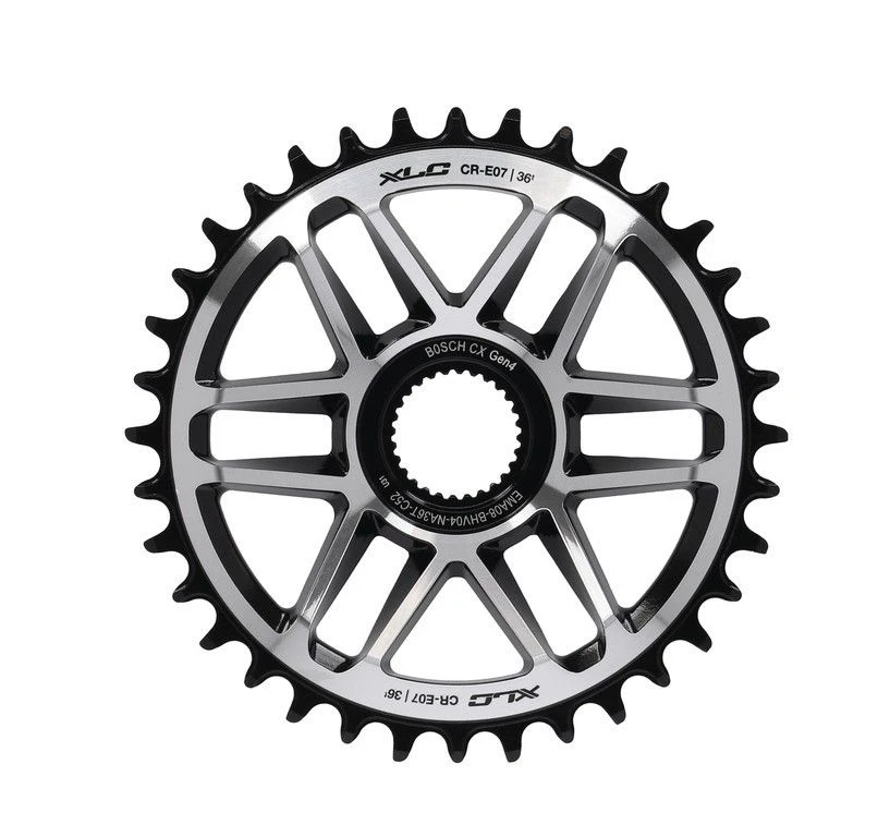 Plateau CR-E07 d’XLC pour VTT électriques avec moteur Bosch Gen.4 et transmission 12 vitesses. Ce plateau en alliage d’aluminium haute qualité, usiné CNC est un plateau Direct Mount avec une ligne de chaîne de 52 mm.